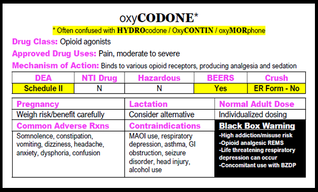 - Pregnancy/lactation safety, DEA schedules, and black box warnings