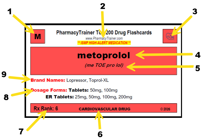• 3 – Organ System Icon: Used to organize the cardsIdentifies the organ system the drug acts upon.